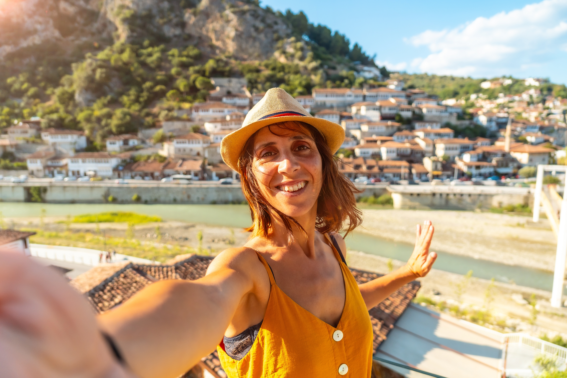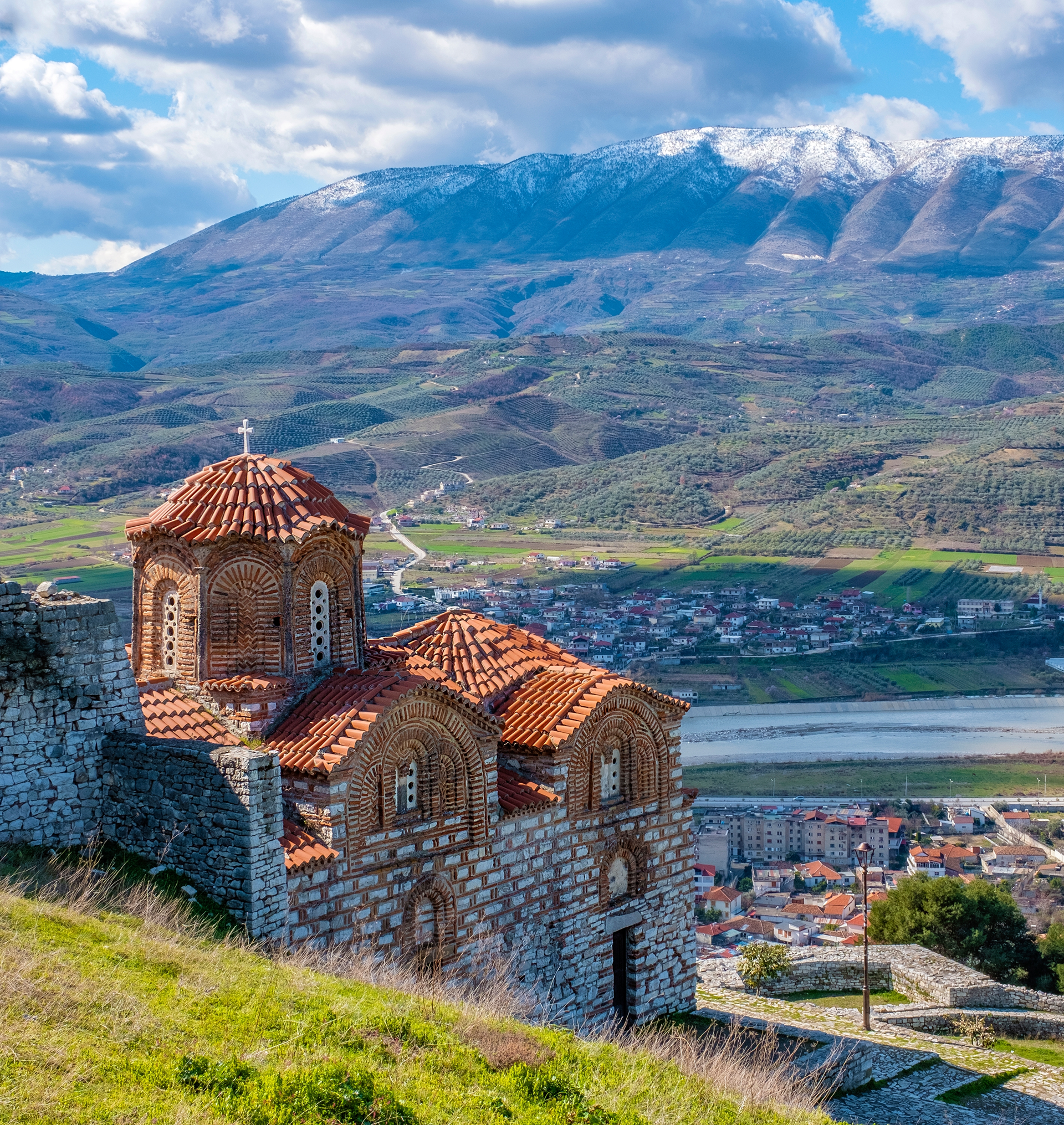 Het eerste bezoek vandaag is de mooiste waterbron in Albanië, de Blue Eye met haar haast onrealistisch blauwe, smaragdgroene kleur die telkens weer verandert naargelang de lichtinval. Het water borrelt omhoog vanuit een karstgrot waarvan niemand de diepte kent, maar dieper dan 50 m is ze sowieso. Vervolgens naar Gjirokastra, een historische stad in het zuiden van Albanië die bekend staat om zijn goed bewaarde Ottomaanse architectuur. Het is een UNESCO-werelderfgoedlocatie en wordt vaak "de stad van de stenen" genoemd vanwege de karakteristieke stenen daken van de huizen. Het lijkt hier alsof de huizen tegen de steile hellingen van het Gjerë-gebergte geplakt werden. Het imposante Gjirokastra-kasteel waakt over de vallei en domineert de skyline te midden van een zee van leisteengrijze daken die een labyrint van steegjes en trappen verbergen. Hier is het aangenaam verdwalen! We brengen een bezoek aan het etnografisch museum, een gereconstrueerd huis gebouwd op de assen van het geboortehuis van Enver Hoxha, de communistische leider van Albanië tot 1985. In Berat verblijven we in het 5*-hotel Colombo.