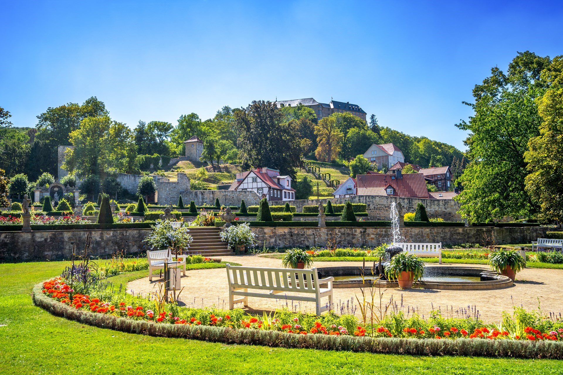 Tijdens een rondleiding komen we meer te weten over de mystieke geschiedenis van deze plek. Aansluiten is er vrije tijd om het beroemde Hexenhaus te bezoeken of gewoon te genieten van de bijzondere sfeer op de bergtop. Op de terugweg rijden we via Blankenburg, de bloemenstad van de Harz, waar we een fotostop maken bij de prachtige barokke slottuinen van Blankenburg. We bewonderen de Braunschweiger Leeuw, de kleurrijke bloemenperken en de schitterende fonteinen voordat we onze dagtocht afsluiten. Een dag vol natuur, geschiedenis en legendes.