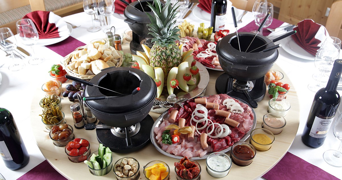 De maaltijden worden geserveerd in het restaurant. ’s Morgens een uitgebreid ontbijtbuffet en ’s avonds een verzorgd 4-gangenmenu bediend aan tafel en op dag 3 is er een fondue-avond voorzien.