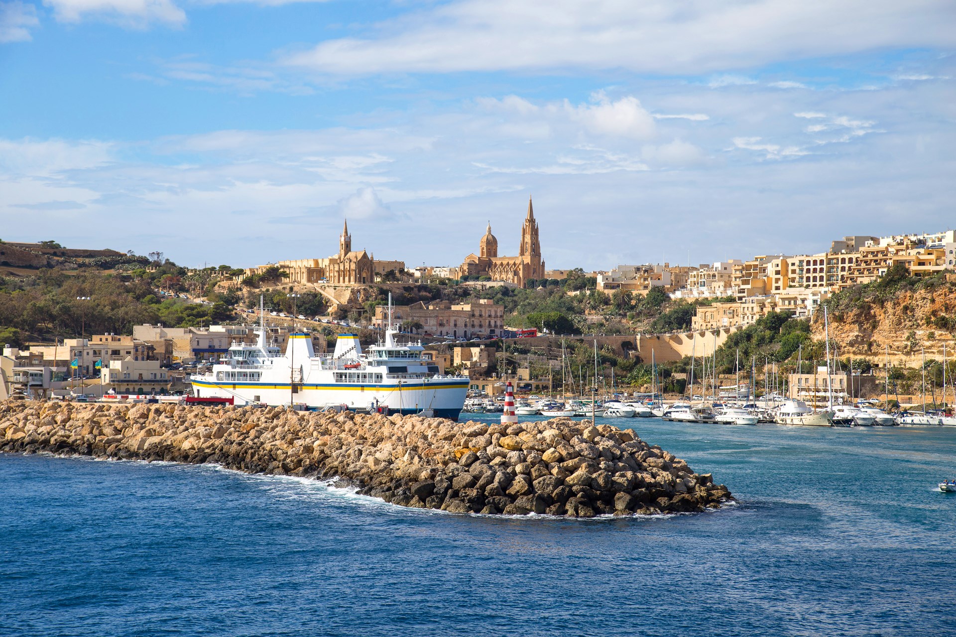 Na het ontbijt rijden we naar Marfa Bay via Xemxija en Mellieha. Hier nemen we de ferry naar Gozo, langs Comino en de prachtige ‘Blue Lagoon’. In Mgarr staat een lokale autocar klaar voor een rondrit langs de hoogtepunten van het eiland, zoals Dwejra, Calypso Cave, en de hoofdstad Victoria met haar citadel en kathedraal. Ook bezoeken we de Megalithische tempels van 3600 v.C. De lunch genieten we in een idyllische baai, een perfecte afsluiting van deze ontdekkingstocht.