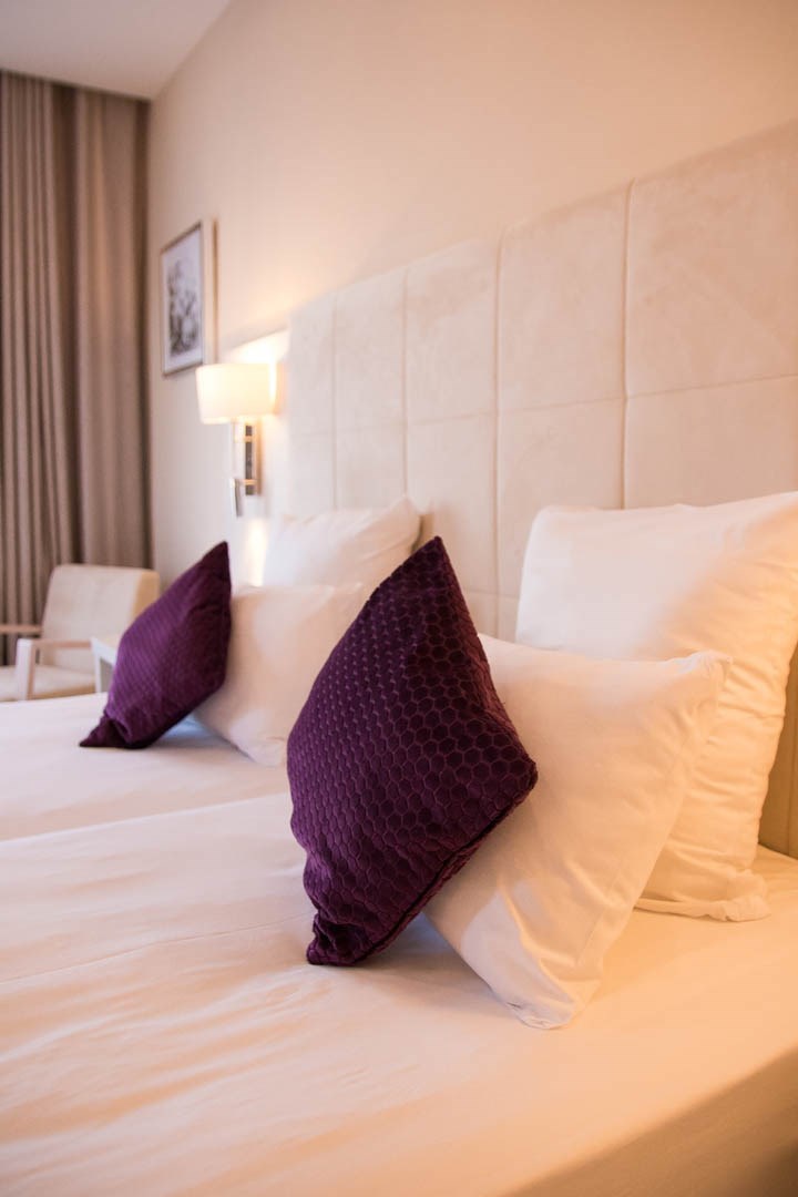 De ruime en elegante kamers zijn voorzien van badkamer met bad/douche, toilet, airco, satelliet-tv en bieden een mooi uitzicht op de tuin. De moderne, elegante en stijlvolle inrichting zal u charmeren. Het hotel beschikt over een binnen- en buitenzwembad, uitgebreide spa en fitness.