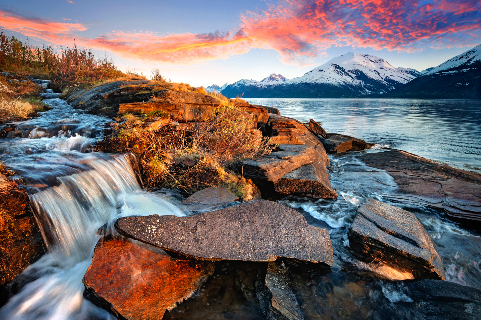 We verlaten Tromsø, de grootste stad boven de poolcirkel, om vervolgens aan boord van overzetboten te gaan die ons eerst over de Storfjord en daarna over de Lyngenfjord brengen. Ondertussen genieten we van het uitzicht op de Lyngenalpen. Na dit feeërieke schouwspel gaan we lunchen op een berg met een uniek uitzicht op de omliggende rotsen, dalen en fjorden. In de namiddag rijden we door de bergpas Kvænangsfjell verder in de richting van Alta. Onderweg stoppen we regelmatig om te genieten van de prachtige natuur. Vannacht verblijven we in Arctic Wilderness Lodge 4*, een zeer gezellig hotel dat prachtig ingericht is en een geweldige architectuur heeft. Deze eersteklas wildernis is aan de oever van de internationaal bekende rivier Alta gebouwd.