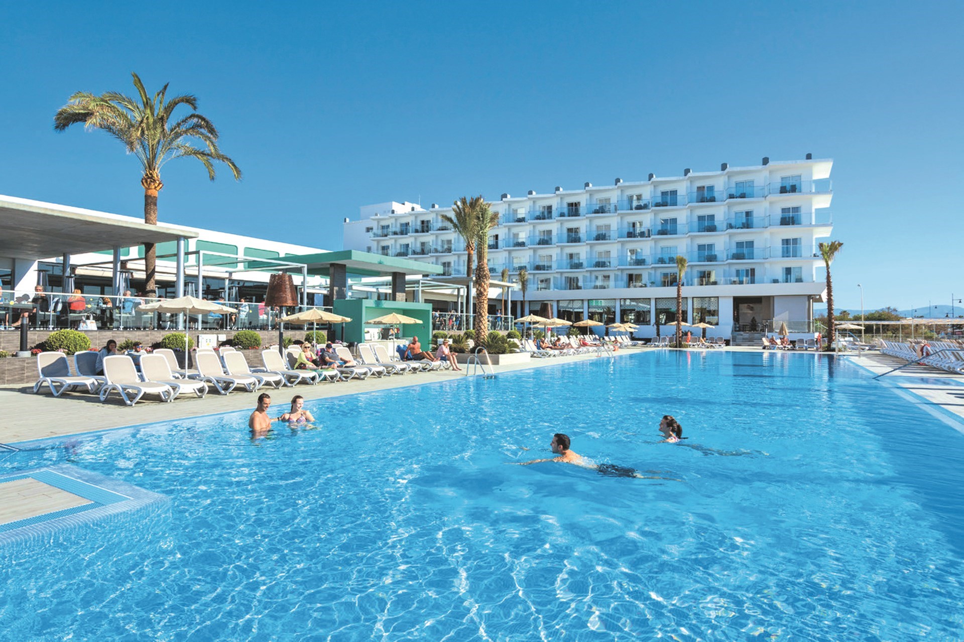 - gratis ligbedden, parasols en handdoeken (mits waarborg) aan het zwembad