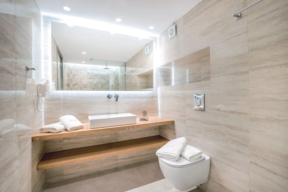 kamers met badkamer (douche, haardroger), tegelvloer, individuele airco, WiFi (gratis), satelliet-TV, koelkast, safe (betalend) en balkon.