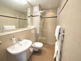 Comfortabele kamers met TV, telefoon en balkon. Badkamer met douche, toilet en haardroger.